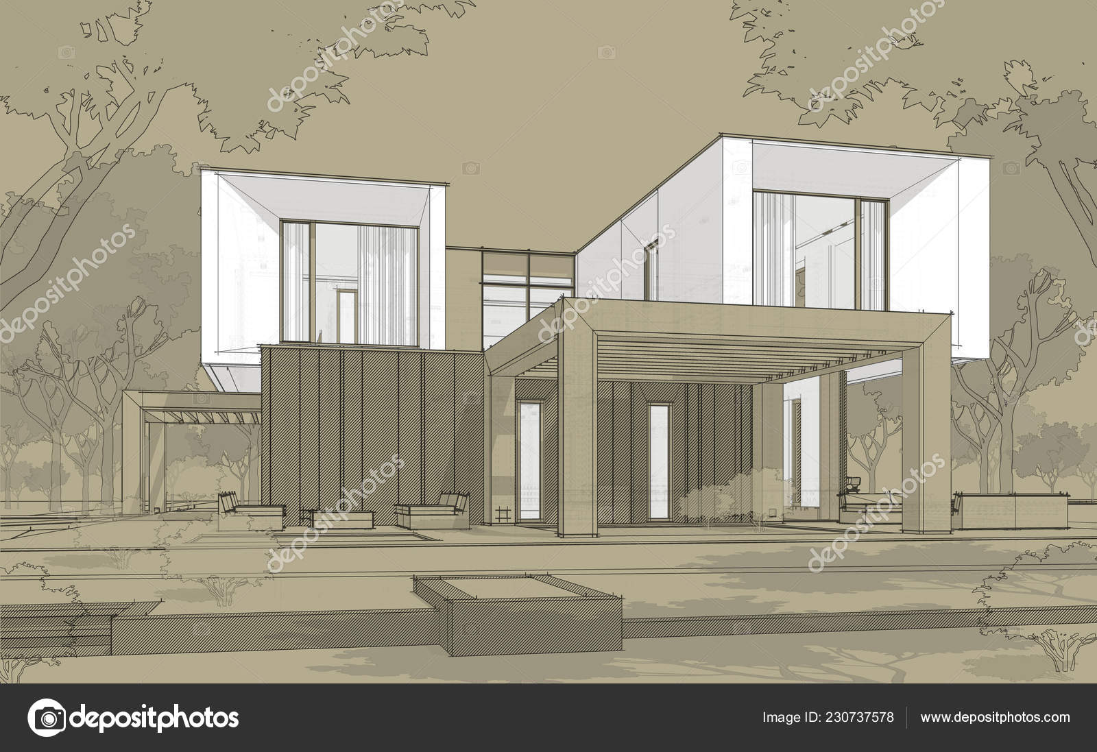 Rendering Sketch Modern Cozy House Garden Garage Sale Rent