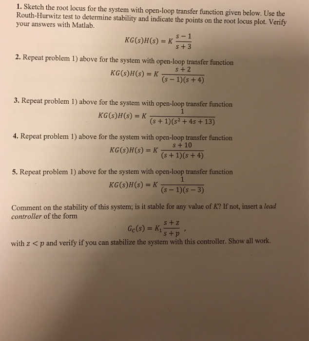 Solved 1 Sketch The Root Locus Diagram Of The Following