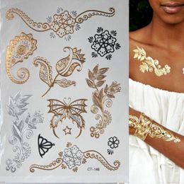 Hot Flash Metallic Waterproof Temporary Tattoo Gold Silver Tatoo Women Henna Flower Taty Design Tattoo Sticker