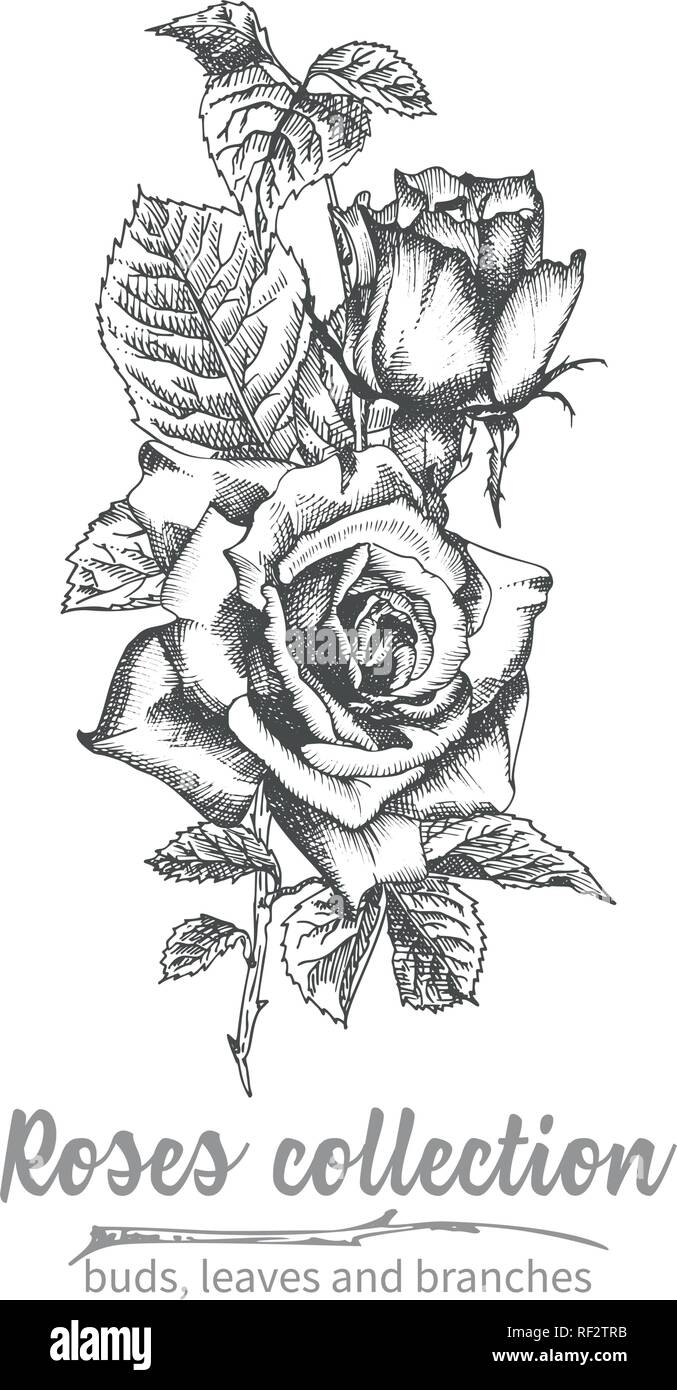 Bouquet Of Rose Flowers Drawing And Sketch Stock Vector