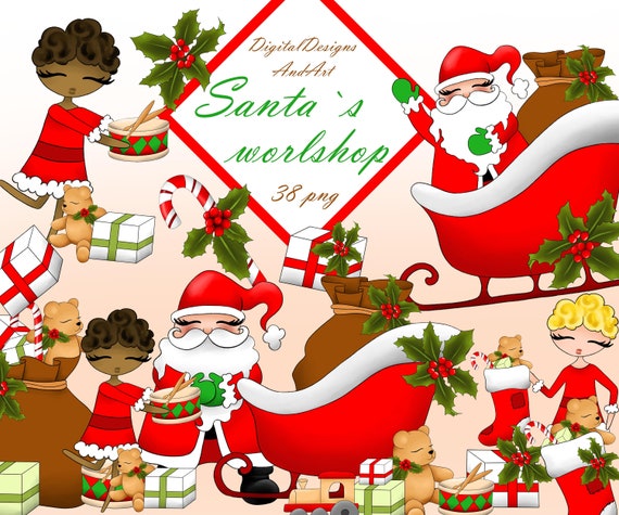 Santa Clipart Santa Workshop Clipart Santa Illustration Santa Claus Clipart Christmas Toys Christmas Presents Christmas Clipart
