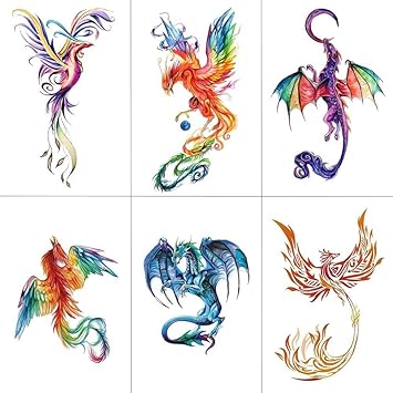 Amazoncom Colorful Watercolor Phoenix Dragon Temporary