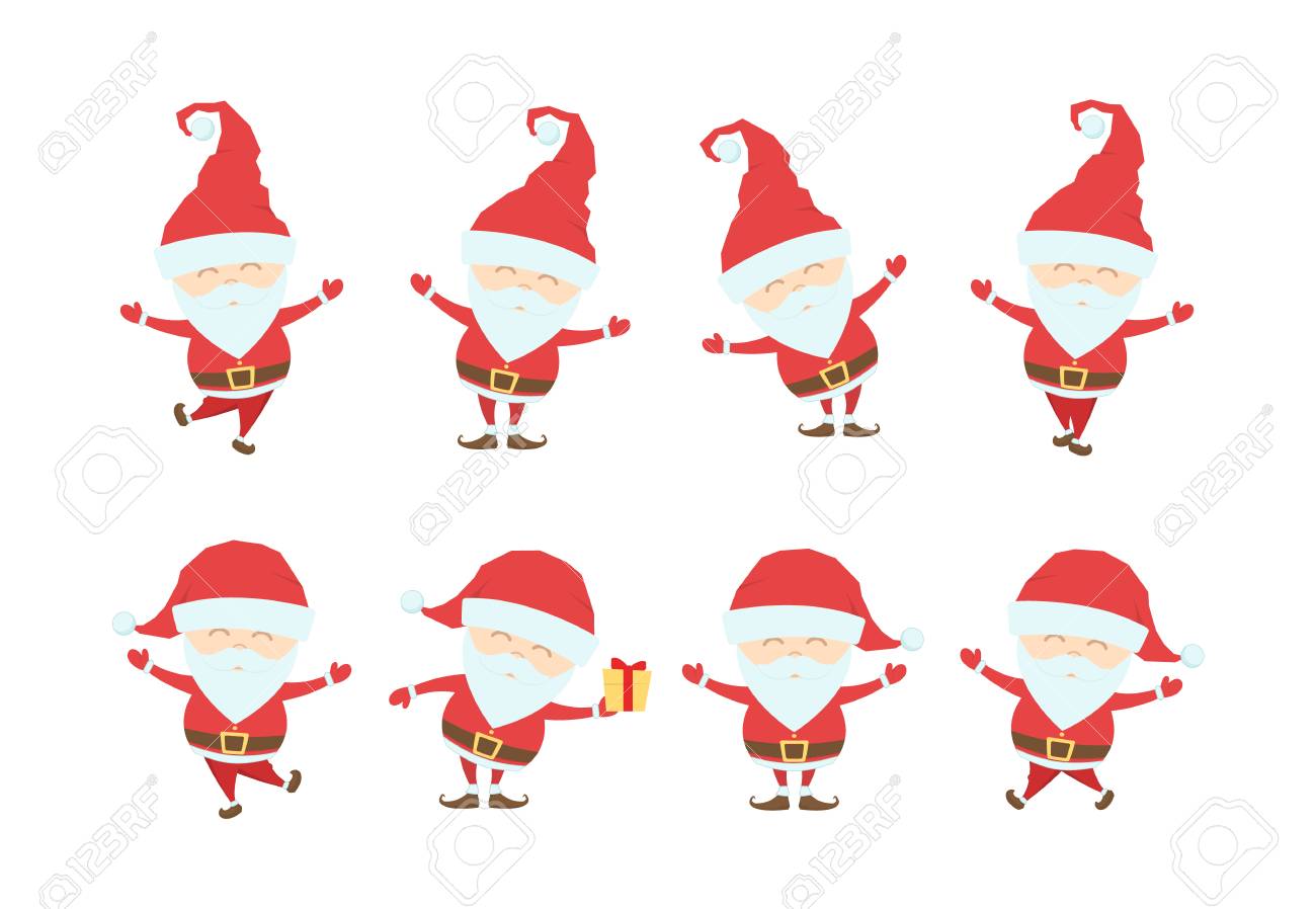 Set Of Funny Christmas Santa Claus Cartoon Characters Isolated