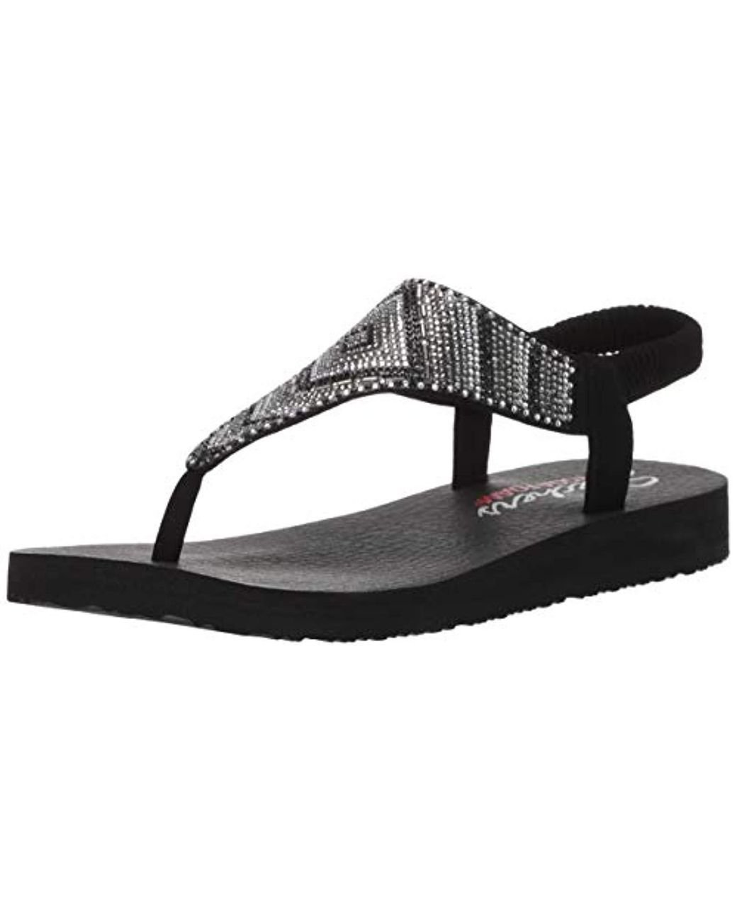 Skechers Womens Meditation Glam Flash Rhinestone Toe Loop Thong Flip Flop