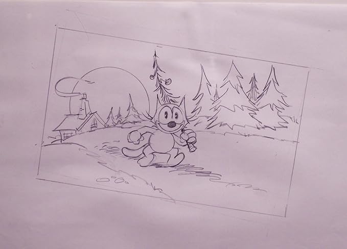 Felix The Cat Animation Cel Drawing Christmas Theme Don