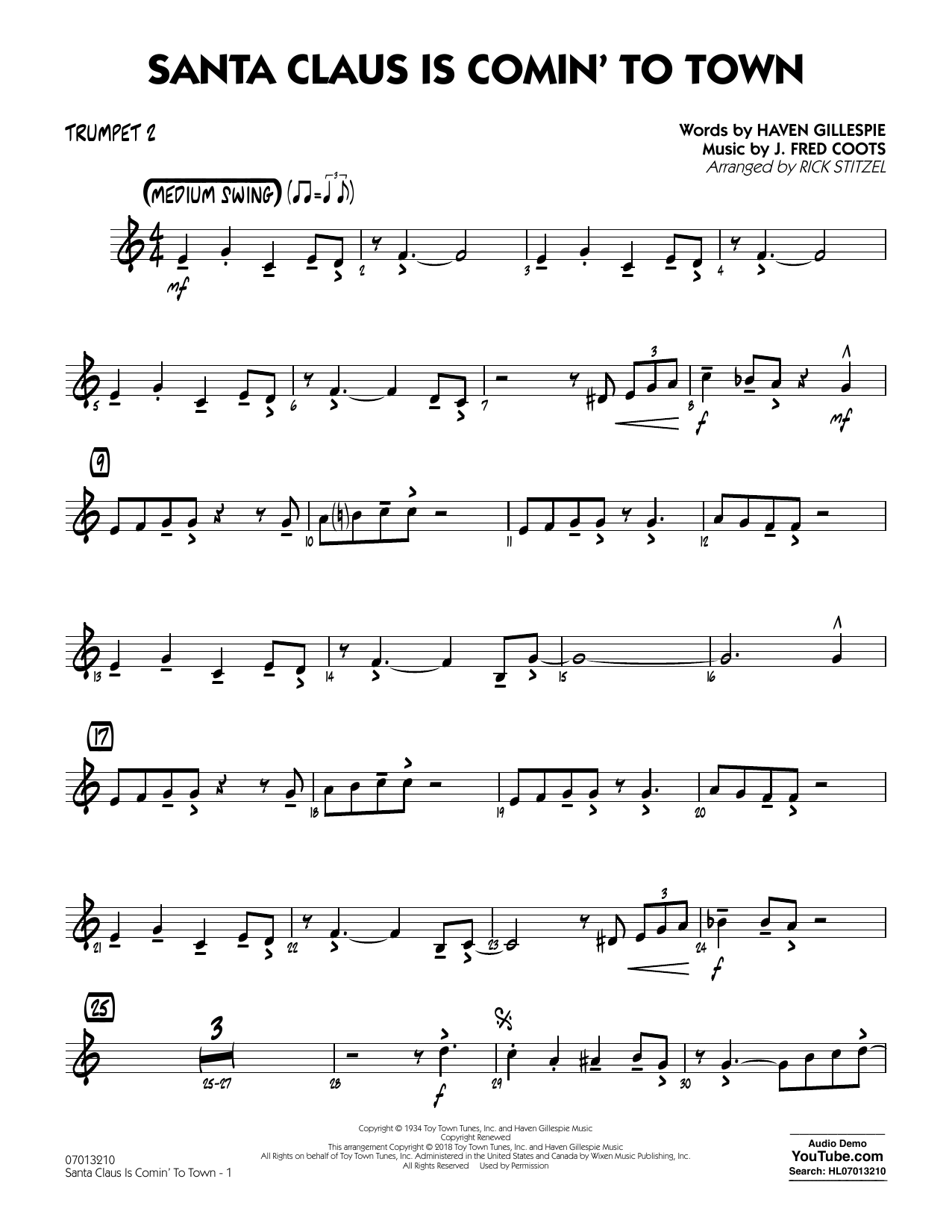 Santa Claus Is Comin To Town Trumpet 2 By Rick Stitzel Jazz Ensemble Digital Sheet Music